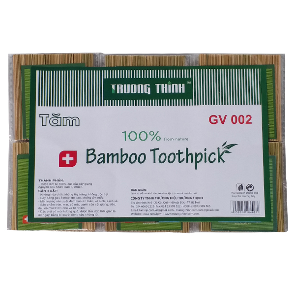 Được sản xuất từ cây giang 100% cật, nguyên liệu hoàn toàn tự nhiên. Được tẩm quế trên dây truyền khép kín bằng bí quyết gia truyền đảm bảo sản phẩm siêu sạch. Được đóng gói với thương hiệu Trường Thịnh
