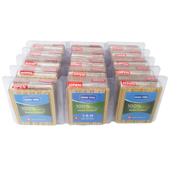 Mỗi hộp bên trong có 200 chiếc tăm (+ - 10 que)